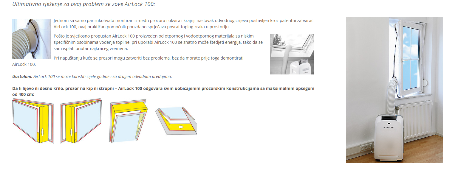 AirLock 100 odgovara svim standardnim konstrukcijama prozora s maksimalnim otvorom od 400 cm.