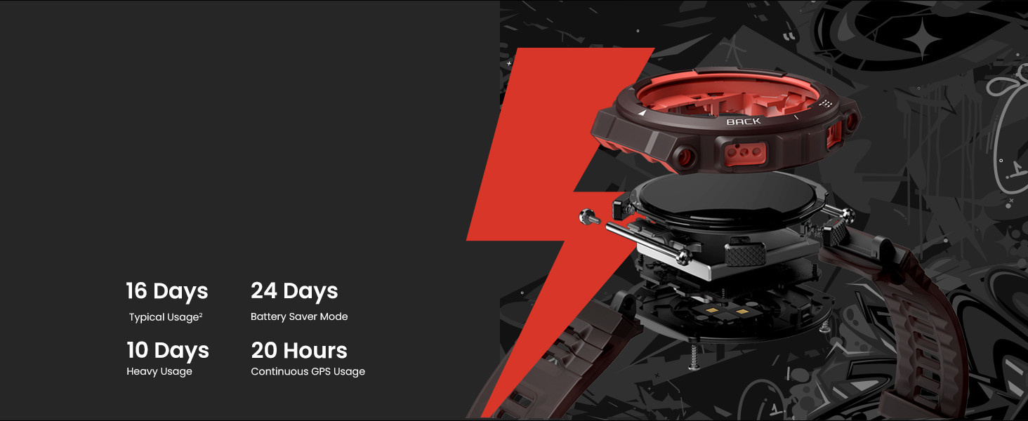 Punite manje, a učinite više, zahvaljujući snažnoj bateriji Amazfit Active Edgea - koja može trajati do 16 dana uz normalnu upotrebu ili čak do 20 sati uz kontinuiranu upotrebu GPS-a.