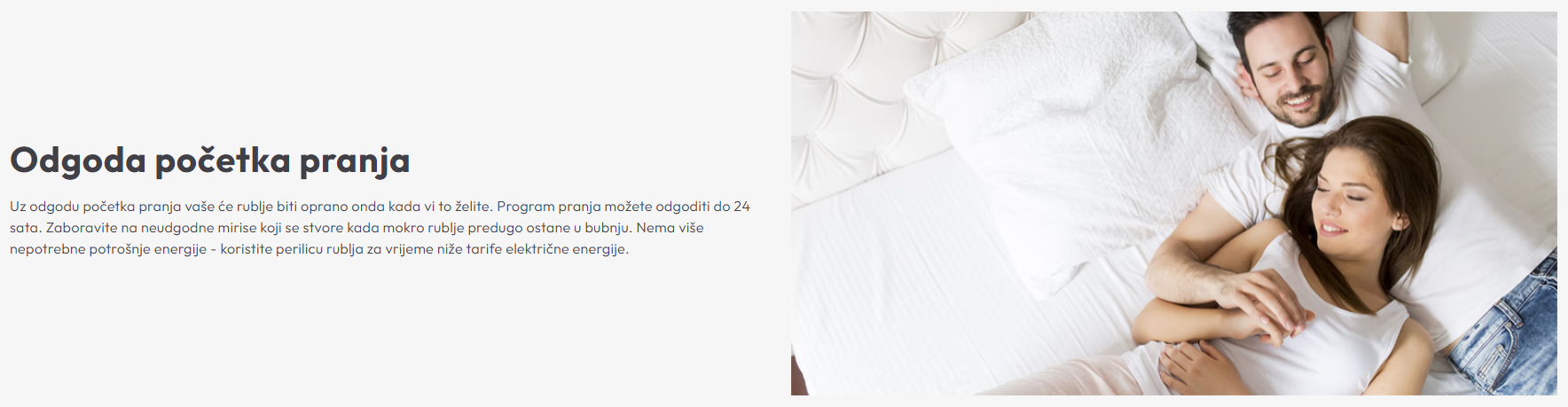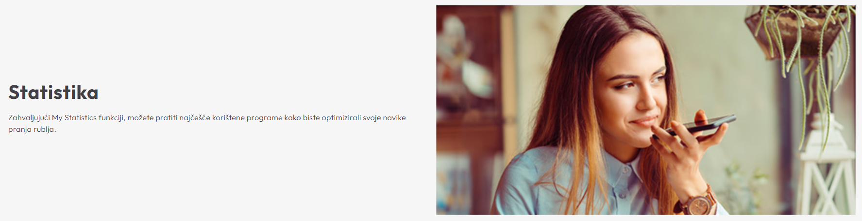 Brzi programi prilagodavaju se vašem životnom stilu – odaberite izmedu 60-minutnog ili 30-minutnog pranja te 14-minutnog osvježavanja odjece. Kompletno pranje kada je potrebno, bilo da je rijec o pranju veša sredinom sedmice ili u zadnji cas. Naš Antialergijski parni program s certifikatom Swissatest kombinuje ciklus pranja i pare za uklanjanje više od 99,99 % bakterija i virusa na temperaturama iznad 60 °C. Takoder, nakon svakog pranja se smanjuju polen i alergeni te odjeca postaje higijenski cista. Pomocu gumba TimeSave prilagodite cikluse pranja svom rasporedu i potrošite manje vremena za pranje veša. Uz program EasyIron vaša odjeca izlazi iz mašine s manje nabora. Tokom nježnog ciklusa bubanj izmjenjuje smjer rotacije, omogucujuci odjeci slobodnije kretanje — što znaci manje vremena za glacanje, a više za vas.