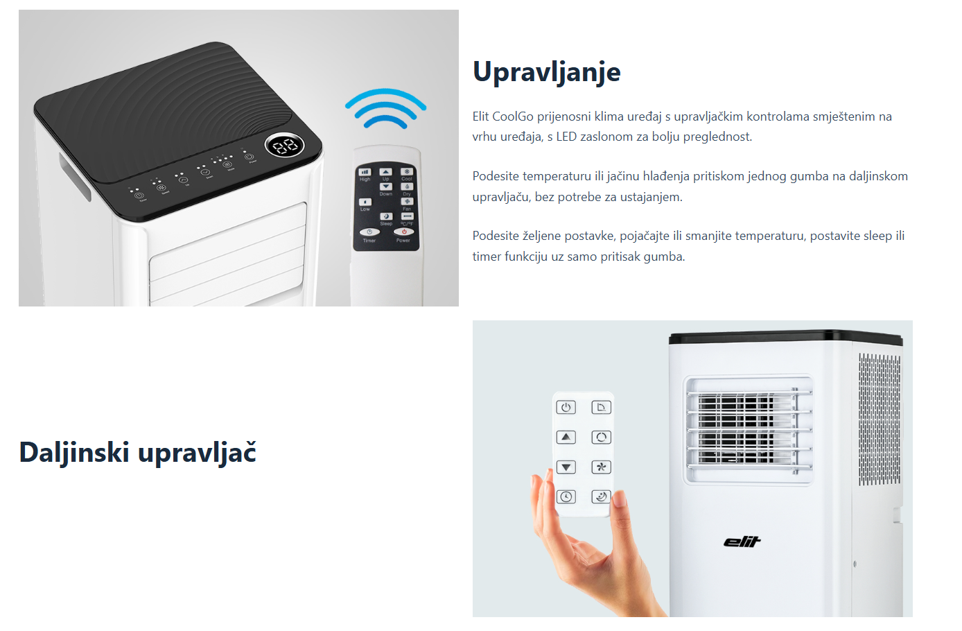 Prijenosni klima uređaj koji hladi, ventilira i odvlažuje prostorije od 10-15m2.