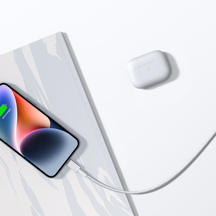 Anker 322 USB-C na Lightning pleteni kabel - 0,9 m bijeli: Brzo punjenje, izdržljivost testirana s više od 12.000 savijanja, MFi certifikat, kompatibilan sa svim uređajima s Lightning konektorom. Duljina kabela 0,9 m.