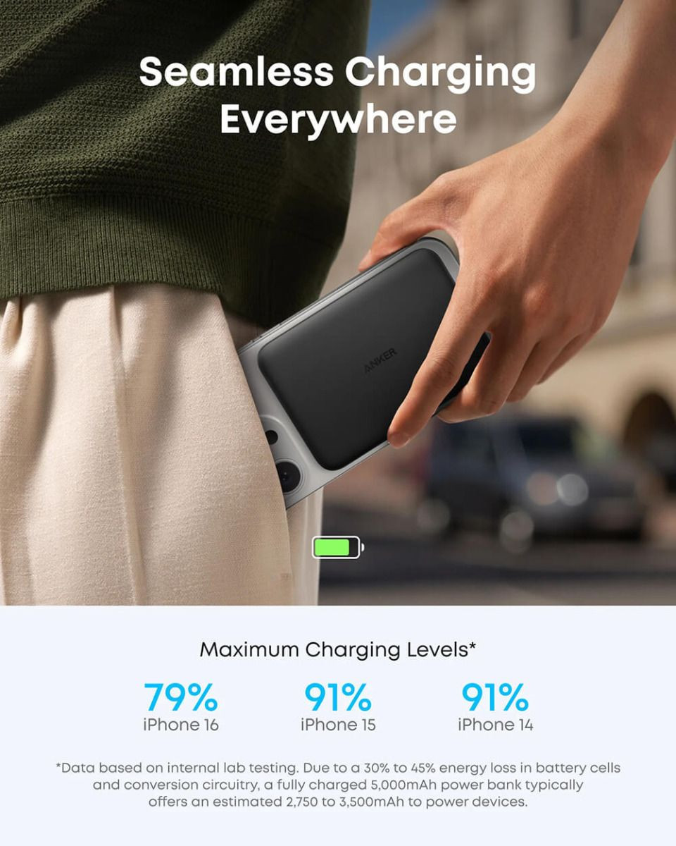 Sa 15W MagSafe kompatibilnim brzim punjenjem, Anker Nano Power Bank pruža visoku efikasnost u punjenju mobilnih uređaja - puni iPhone 16 Pro do 25% za samo 42 minute.
