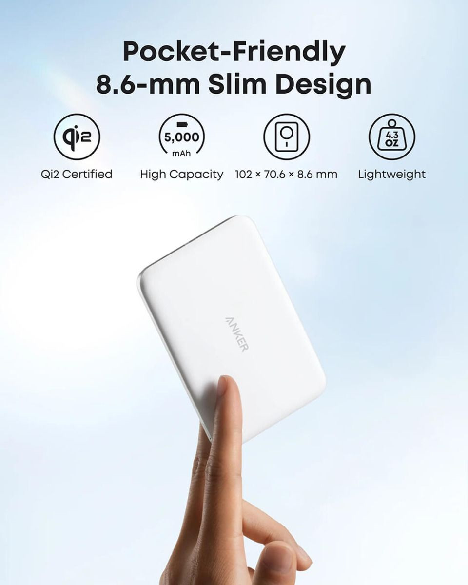 Ultra tanka magnetna eksterna baterija od 5000 mAh, kompatibilna sa Qi2, nudi brzo i sigurno punjenje uz 15W MagSafe i napredne sigurnosne funkcije.