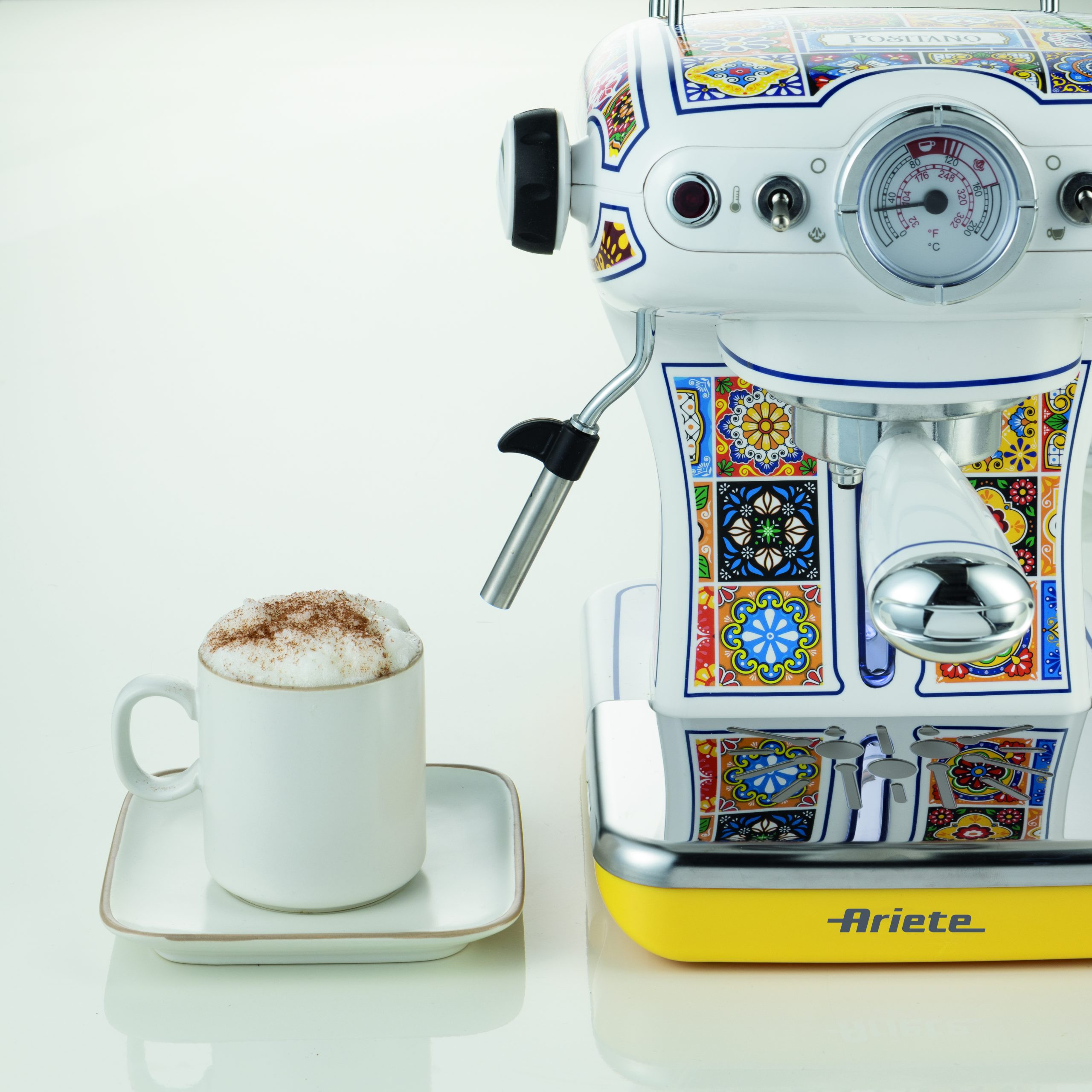 Espresso aparat za kafu Positano ima elegantan dizajn, obogaćen metalnim završnim detaljima. Sa snagom od 850 W, pritiskom od 15 bara, držačem filtera za kapsule i mljevenu kafu (za 1 i 2 šoljice), uklonjivim poslužavnikom i rezervoarom za vodu, ovaj aparat, koji ujedno služi i za pripremu kafe i kapućina, omogućava vam da uživate u kremastim i intenzivnim kafama i kapućinima kod kuće, kao u omiljenom kafiću.