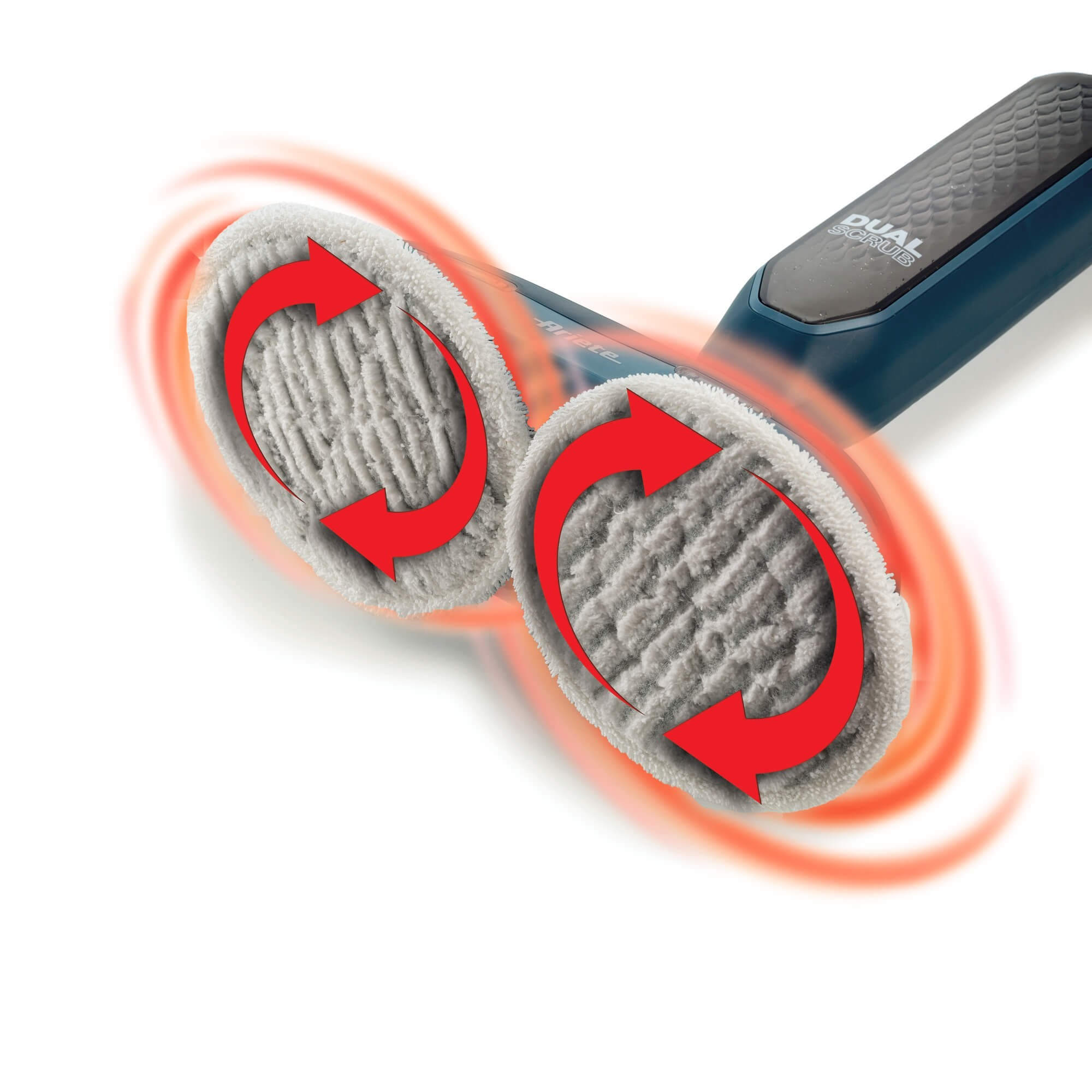 Sa snagom od 1200 W, dva rotirajuća jastučića i motorom od 60 W, Dual Steam Scrub istovremeno pari i riba, otpuštajući i uklanjajući nagomilanu prljavštinu, prašinu, masnoću i, što je najvažnije, eliminirajući do 99,9% virusa i bakterija s površine.