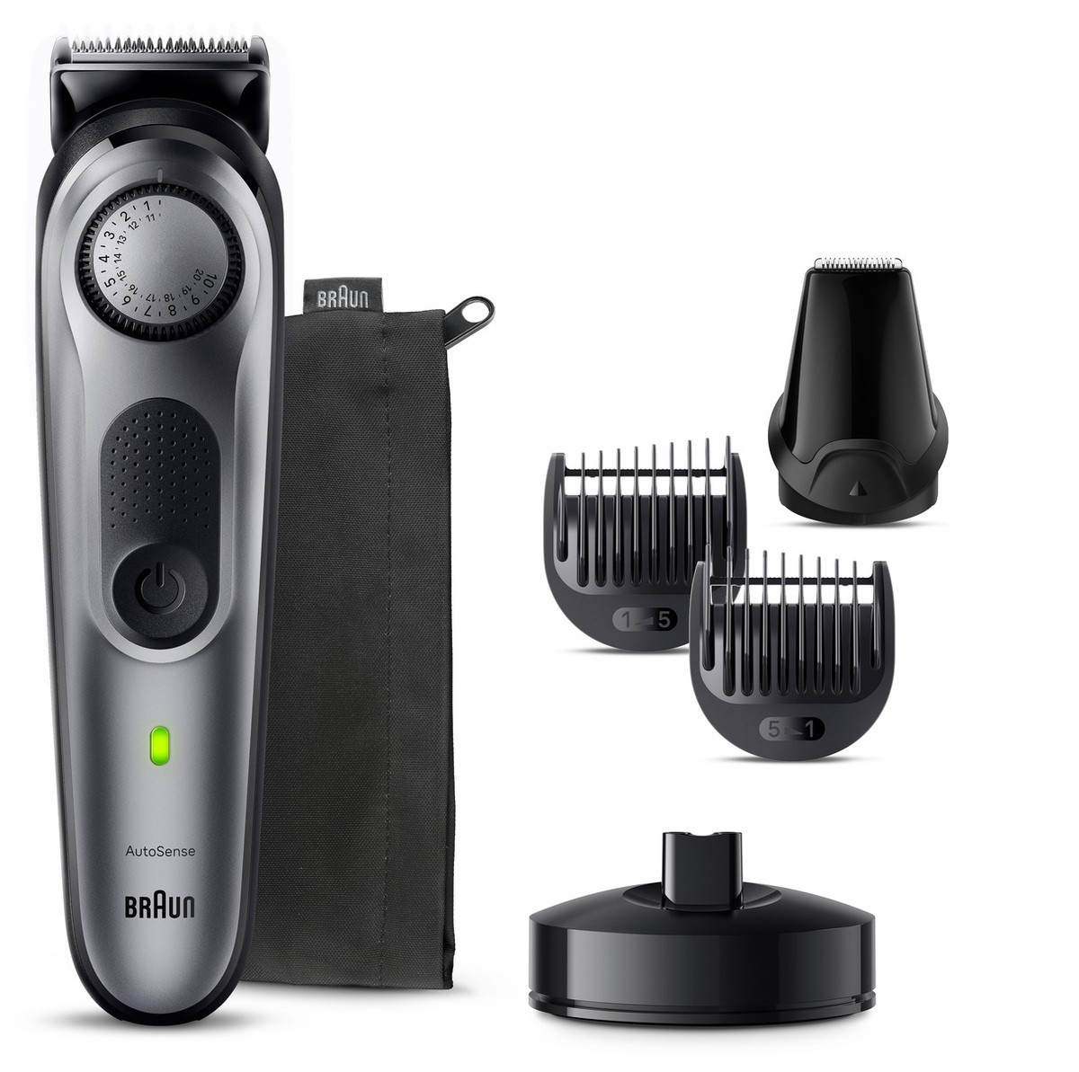 Izgledajte kao da ste upravo došli od brijača bez da izađete iz kuće uz Braunov trimer za bradu Series 7 Professional. Precizan je pri svakom potezu zahvaljujući našoj najoštrijoj oštrici ProBlade dok tehnologija AutoSense osigurava profesionalnu ravnomjernost podrezivanja najrazličitijih brada. Tu je i kotačić ProWheel za precizno podešavanje na 40 postavki duljine i baterija koja pruža 100 minuta bežičnog rada.