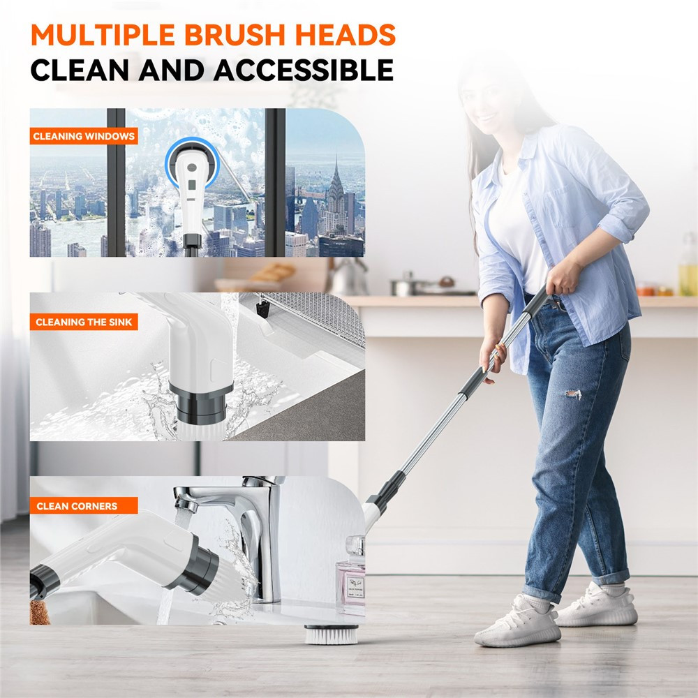 【Svestrani 8-u-1 sistem za čišćenje】Opremljen sa 8 zamjenjivih glava četke za različite scenarije čišćenja, bez napora uklanjajući kamenac i čisteći različite površine od pločica do kada, podova, pa čak i poliranje automobila.