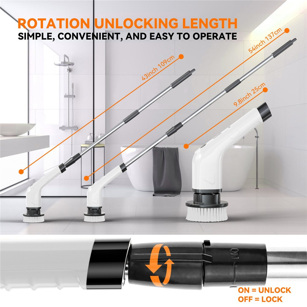 【Podesiva produžna šipka】Teleskopska ručka od nehrđajućeg čelika se proteže od 109 cm do 137 cm, omogućavajući lako dosezanje visokih ili niskih područja bez savijanja ili klečanja.