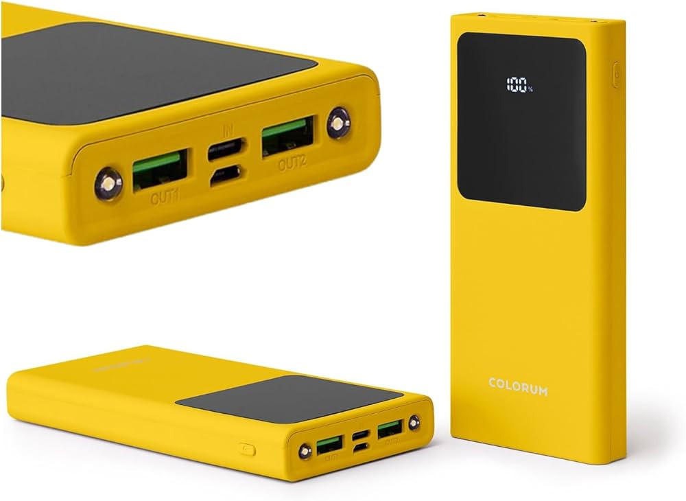 COLORUM Powerbank 10 000 mAh CPB10‑05 Yellow je prijenosna eksterna baterija (powerbank) dizajnirana za punjenje mobitela, tableta i drugih USB uređaja kada niste uz utičnicu. Ovaj model kombinira moderni dizajn u izrazito žutoj boji s praktičnom funkcionalnošću, omogućujući da uvijek imate dodatnu energiju pri ruci. Powerbank dolazi s USB‑A na USB‑C kablom u paketu i ima LED indikator za prikaz razine napunjenosti.