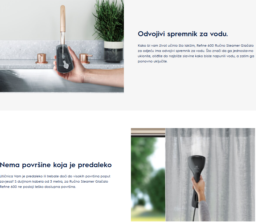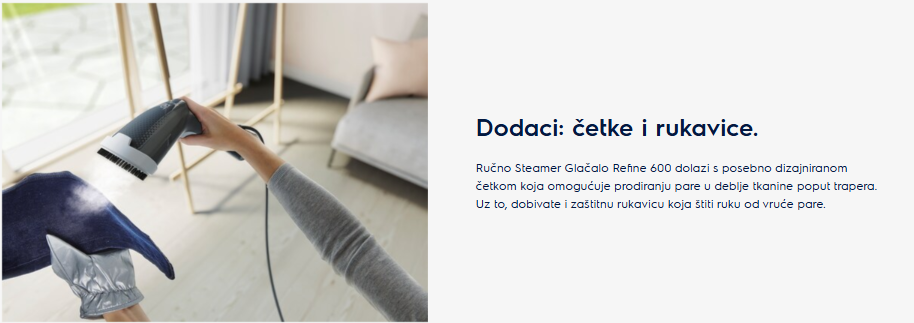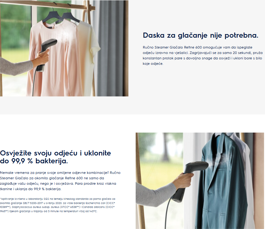 Svježa odjeca bez nabora u svega nekoliko sekundi. Rucna Steamer pegla Refine 600 malih je dimenzija i lako prijenosna gdje god išli. Refine 600 spreman je za korištenje u 20 sekundi, a koristiti ga možete kako biste brzinski ispeglali komad odjece ili ju samo osvježili prije nošenja.