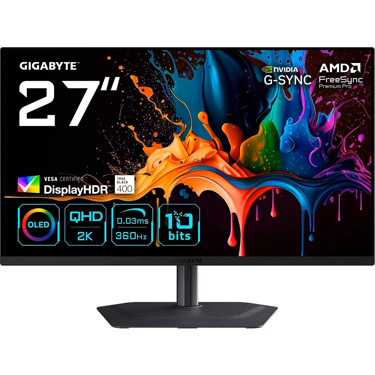 Gigabyte Monitor GO27Q24 OLED, 27" QD-OLED, 2560x1440 QHD, 240Hz, 400nits, 2x HDMI, 1x DP, Tilt, Swive, Pivot, Height adjustment