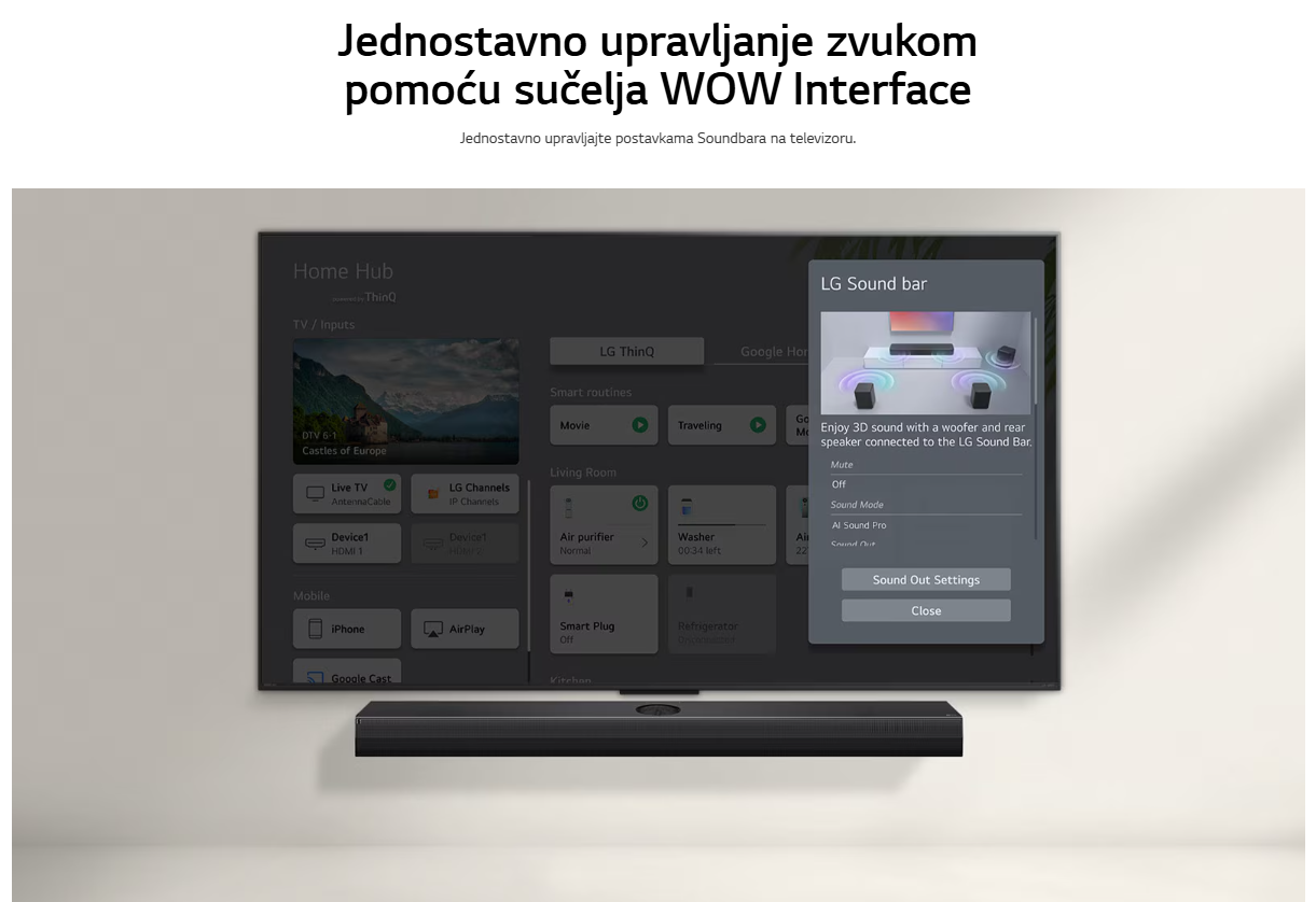 Povezivanje: 3x HDMI (podržava eARC, ALLM), 2x USB 2.0, Simplink (HDMI CEC), HDMI Audio Return Channel eARC (HDMI 2), Wi-Fi 5, Bluetooth 5.1, Ethernet Ulaz, CI Slot, RF Input (Antenna/Cable), SPDIF (Optical Digital Audio Out)