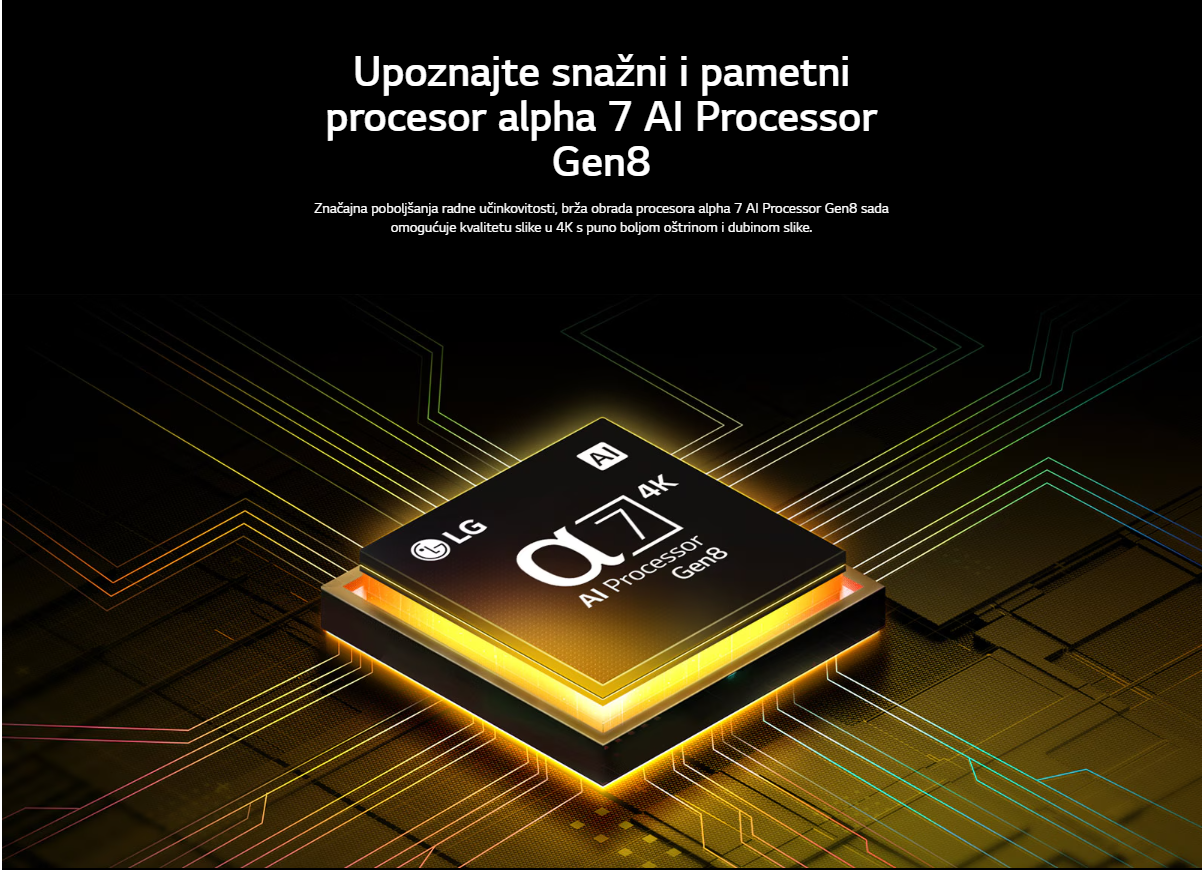 Povezivanje: 3x HDMI (podržava eARC, ALLM), 2x USB 2.0, Simplink (HDMI CEC), HDMI Audio Return Channel eARC (HDMI 2), Wi-Fi 5, Bluetooth 5.1, Ethernet Ulaz, CI Slot, RF Input (Antenna/Cable), SPDIF (Optical Digital Audio Out)