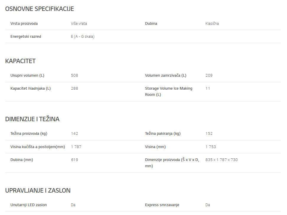 LEDNeto kapacitet zamrzivaća