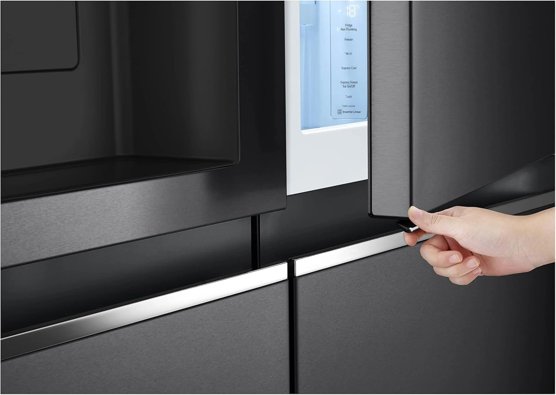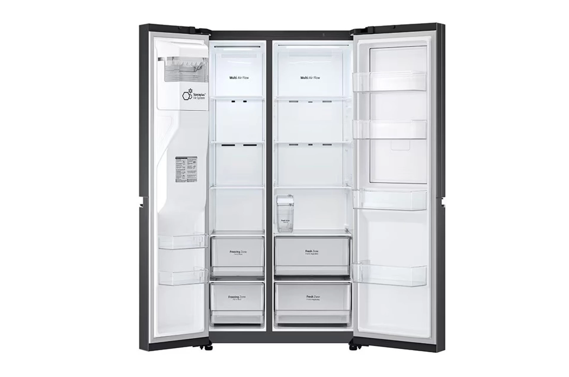 LG GSJV71MCTE je luksuzni Side-by-Side frižider sa kapacitetom od ukupno 635 l raspoređenih na 416 l frižidera i 219 l zamrzivača. Opremljen je invertorskim kompresorom za stabilno i tiho hlađenje, uz No Frost sistem za eliminaciju zaleđivanja. Door‑in‑Door vrata omogućavaju brži pristup osnovnim namirnicama bez otvaranja cijele komore. Hlađenje je optimizovano sistemom Multi‑Airflow, a ugrađeni LED displej omogućava intuitivno podešavanje temperature. Dostupan je Water Dispenser i Ice Maker eksterno, a niska buka od 36 dB i energetska efikasnost klase E (350 kWh/ godinu) čine ga idealnim izborom za moderne kuhinje.