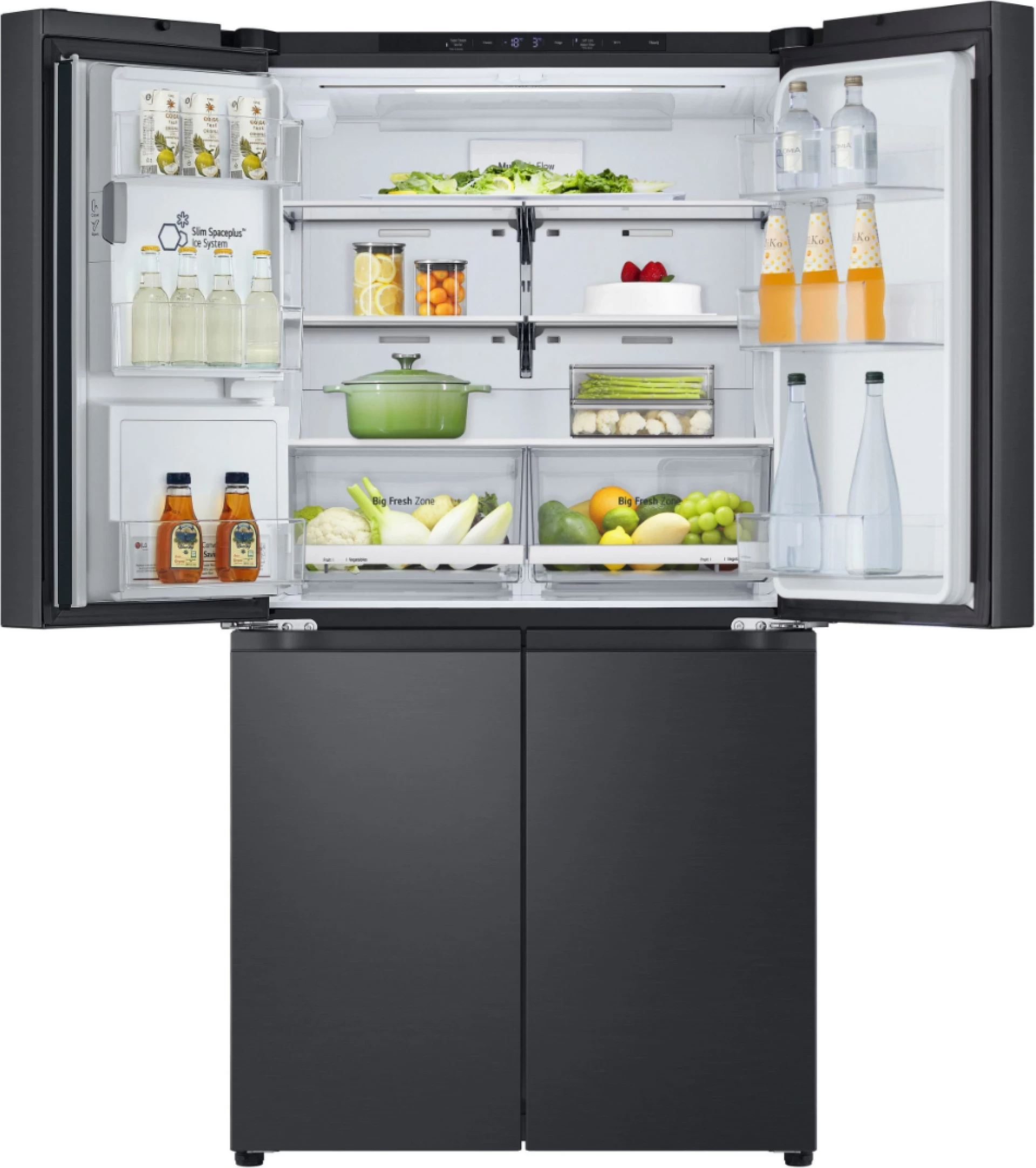LG frižider GMF960EV2E je prostrani Multi-Door / Side-by-Side stil frižider dizajniran za moderne kuhinje i zahtjevne korisnike koji žele veliki kapacitet hlađenja i zamrzavanja uz pametne tehnologije za očuvanje svježine hrane. Ovaj model nudi ukupnu zapreminu od oko 646 litara, uz dovoljno prostora za svježe namirnice, piće i smrznutu hranu — idealan za velike porodice ili domaćinstva koja često kupuju veće količine namirnica.
