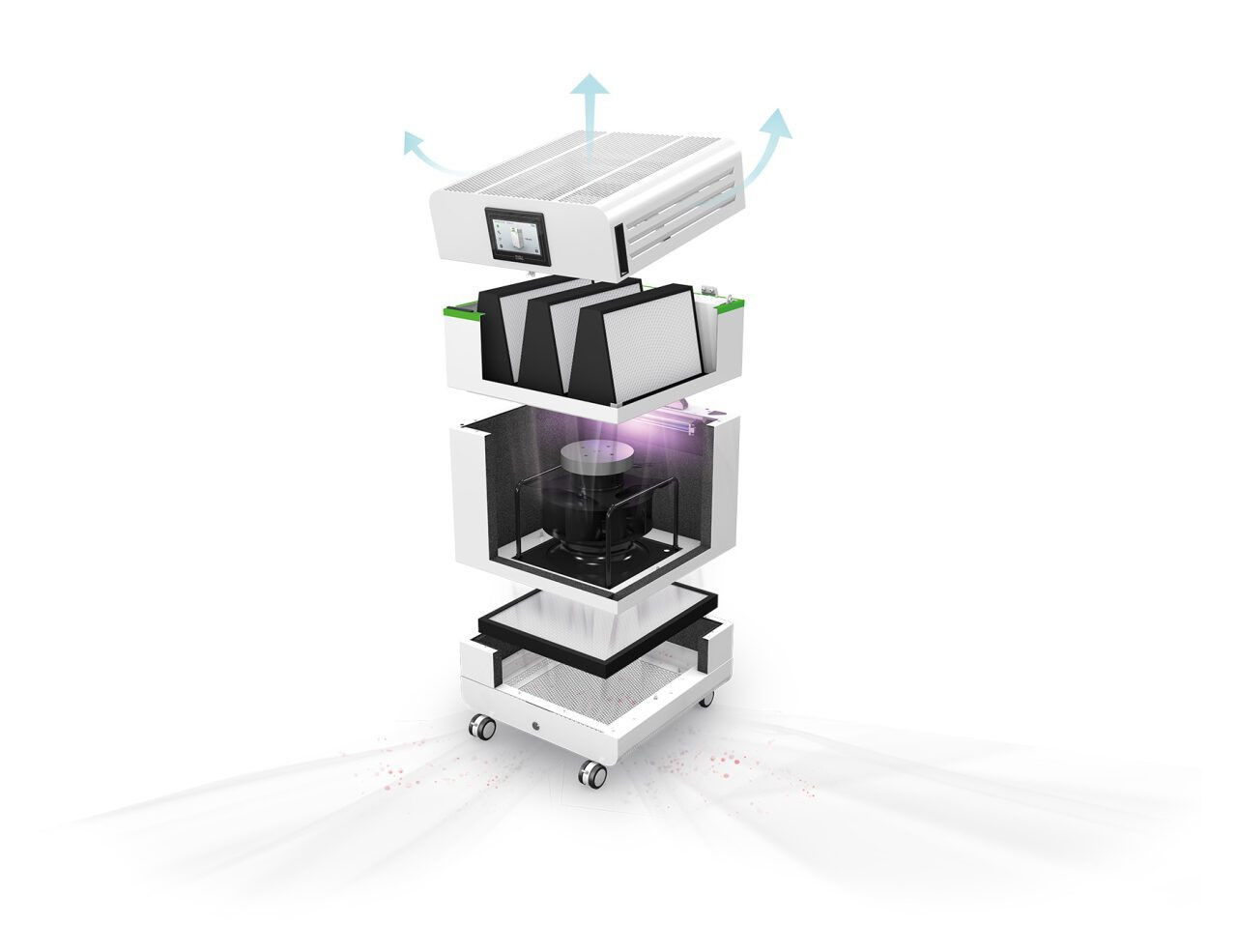 Visokoučinkoviti mobilni uređaj za pročišćavanje zraka koji osigurava prostor bez virusa. Koristi vrhunsku HEPA H14 tehnologiju filtracije, istu onu koja se koristi u operacijskim dvoranama i čistim sobama, kako bi stvorio sigurno okruženje u zatvorenim prostorima.