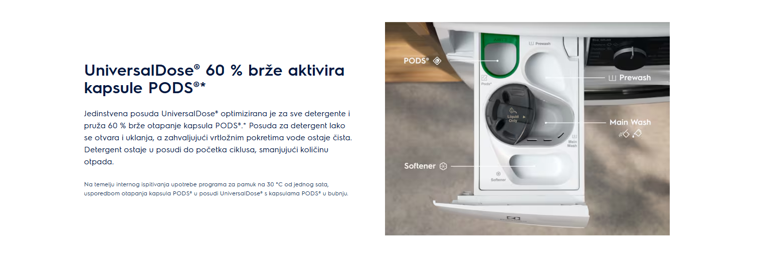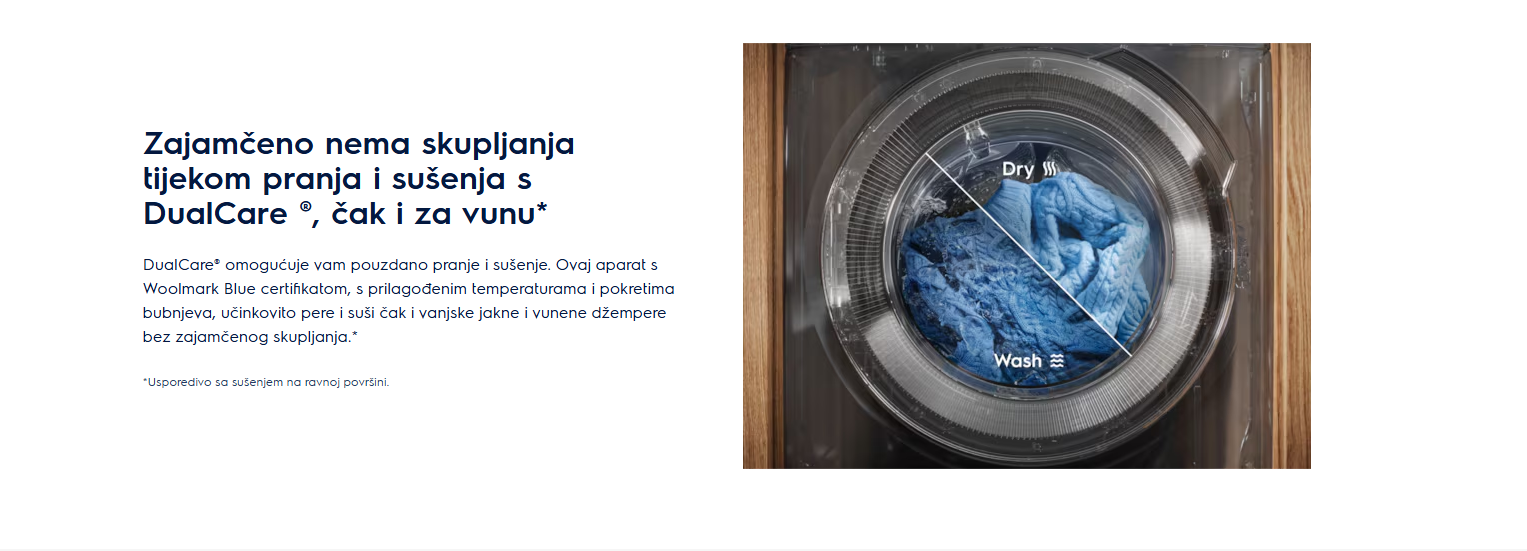 Perite, sušite ili parno čistite u jednom uređaju. Perilica-sušilica 800 s tehnologijom UltraCare pruža učinkovito čišćenje, čak i na 30°C uz unaprijed miješani i ravnomjerno raspoređeni deterdžent i omekšivač. I temeljitim sušenjem izbjegava se skupljanje, čak i za vunu. Universal Dose® 60% brže aktivira kapsule PODS® Osvježite parom i ponovno nosite, uz uštedu do 96% vode. Zajamčeno nema skupljanja tokom pranja i sušenja s DualCare ®, čak i za vunu. Daljinski upravljajte svojim uređajima za pranje rublja uz Connected.