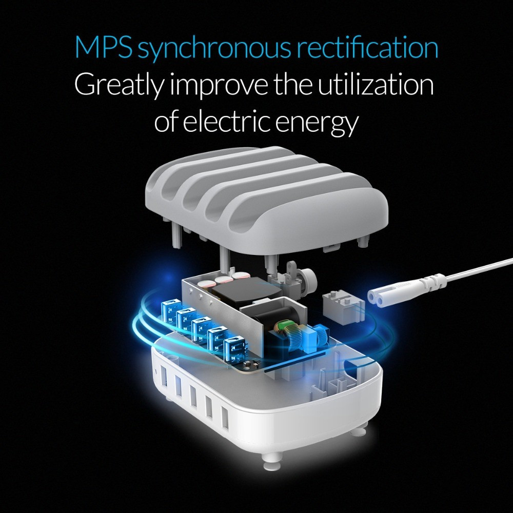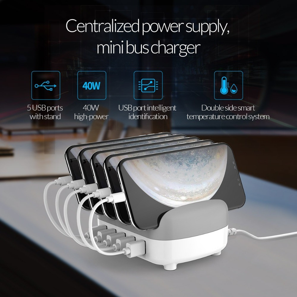 ORICO DUK-5P 5-portna USB stanica za punjenje, punjač od 40W maks. sa držačem za telefon i tablet, 5V 2.4A*5 - crna / EU utikač