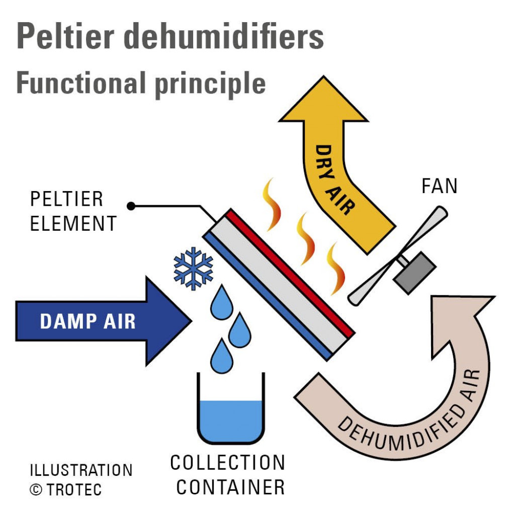 Peltier odvlaživač je idealno rješenje posebno u prostorijama osjetljivima na vlažnost, kao npr. ormari za odjeću i cipele, komore za skladištenje hrane ili čak male sanitarne prostorije bez prozora. TTP 10 E oslobađa prekomjernu vlagu ili smanjuje kondenzaciju i na taj način spriječava rast plijesni.