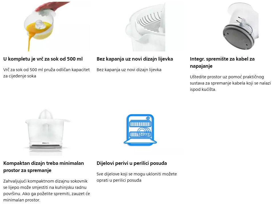 TESLA Citruseta CJ100WG; Snaga 40 W; Kapacitet posude 700ml; Dvosmjerno okretanje; Dvije veličine konusa za cijeđenje; Zaštitni poklopac; Jednostavno rukovanje i čišćenje