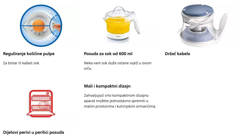 TESLA Citruseta CJ100WG; Snaga 40 W; Kapacitet posude 700ml; Dvosmjerno okretanje; Dvije veličine konusa za cijeđenje; Zaštitni poklopac; Jednostavno rukovanje i čišćenje