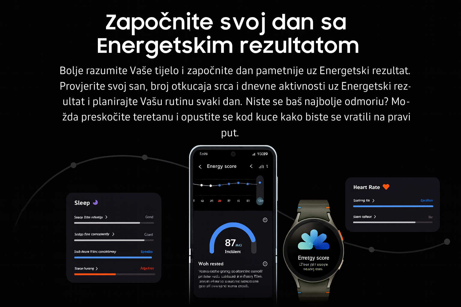 Provedite svoj dan uz novi 3nm procesor. Pronađite svoj put uz dvofrekventni GPS. Pratite otkucaje srca, treninge i san uz napredni BioActive senzor. Zatim će Galaxy AI pružiti uvide s energetskim rezultatom koji će vam pomoći u praćenju vašeg zdravlja.