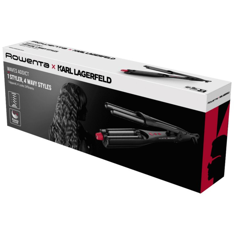 SEB Rowenta uvijač za kosu CF471LF0 Rowenta x KARL LAGERFELD Waves Addict uvijač ostavlja četiri prekrasna izgleda nadohvat ruke, za zadivljujući stil koji ne prestaje i mpresionirati. Pronađite svoj savršeni valoviti izgled uz četiri postavke dubine jednostavne za korištenje za prirodne valove, valove na plaži, opuštene valove ili profinjene i glamurozne valove. Šest digitalnih temperatura (do 210°C) podesivih prema tipu kose dolaze zajedno s poboljšanim značajkama za jednostavno oblikovanje iz dana u dan—sve u ergonomskom, modnom dizajnu. ROWENTA uvijač za kosu CF471LF0, KARL LAGERFELD - WAVES ADDICT 4IN1; 6 temperatura: do 210°C; Podesivih prema tipu kose; Obloga: keramička; Kukica za jednostavno odlaganje; Dugi kabal: od 1,8 m;