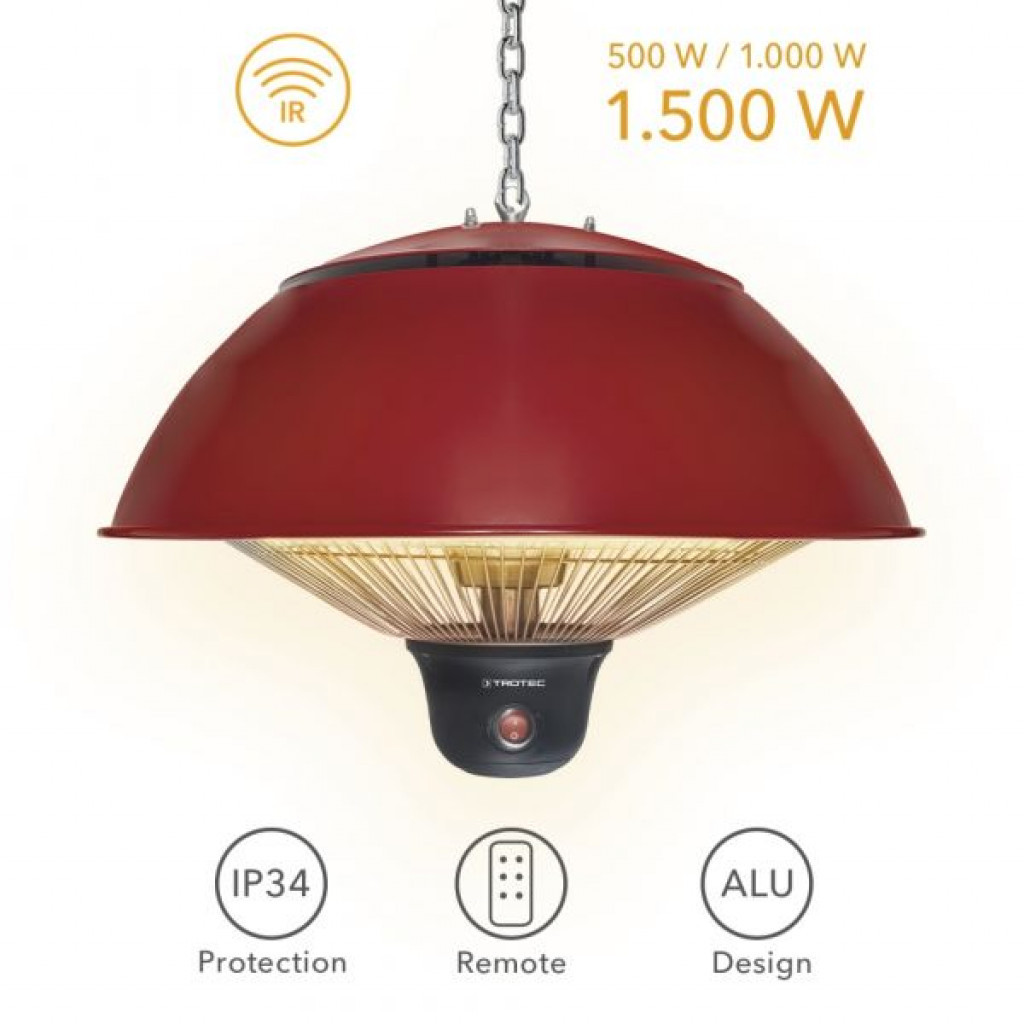 Bilo kao izvor topline za balkon kod kuće, natkrivenu terasu, otvoreni šator, vrtni paviljon ili kao korisničku službu u ugostiteljstvu na otvorenom: visokokvalitetni dizajnerski stropni reflektor IR 1510 SC postavlja vizualne naglaske i osigurava ugodne i ujednačene Sveobuhvatna toplina od 360 ° na hladnim vanjskim temperaturama. Infracrvena toplina odvija se odmah nakon što uključite uređaj pomoću prekidača za uključivanje / isključivanje s radnom kontrolnom lampicom. Svatko tko je jednom uživao u posebno ugodnoj i ugodnoj infracrvenoj vrućini ispod karminom crvene stropne grijalice, više neće htjeti propustiti ovaj ugodan osjećaj.