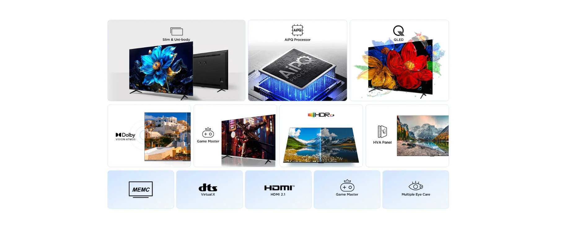 Algoritam TCL s omogućenim AiPQ Engineom obrađuje sadržaje sa stabilnom i visokokvalitetnom 4K rezolucijom. U međuvremenu, tehnologija akceleratora igara pruža vam glatkije iskustvo igranja. Sada je vrijeme za uživanje u autentičnoj filmskoj ili igraćoj večeri.