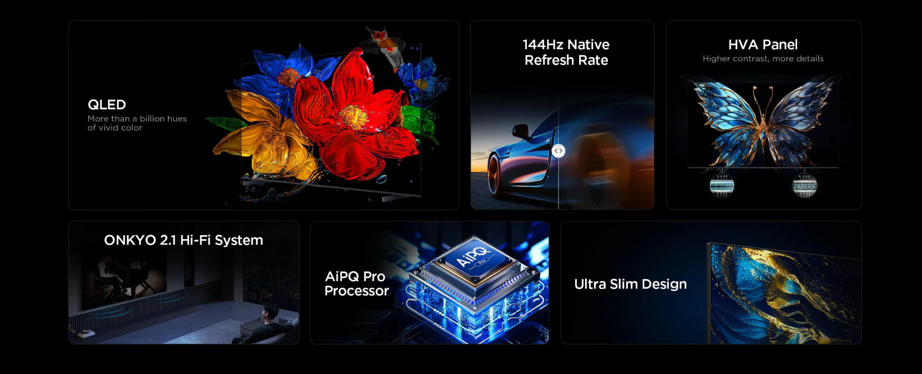 Povezivanje: Bluetooth BT5.4, Wi-Fi 5, HDMI verzija: HDMI2.1, HDMI2.1 (eARC i ARC), HDMI CEC, AMD FreeSync