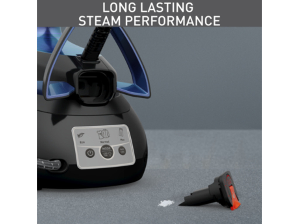 Funkcije: vertikalno peglanje, Eco režim, sistem protiv kamenca (odvojivi kolektor), automatsko isključivanje, sistem zaključavanja za sigurnost