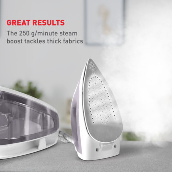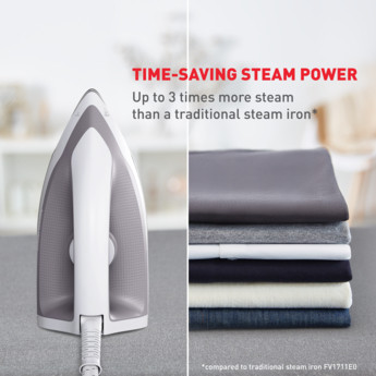 Tefal SV6115E0 Express Easy, Udar pare 120 g / min. Brzo zagrijavanje: 2 minute. Pritisak pare 5.2 bara. Zapremina spremnika za vodu 1,4l. Funkcija pojačavanja pare, čija je brzina jednaka 280 g / min, Eco način rada