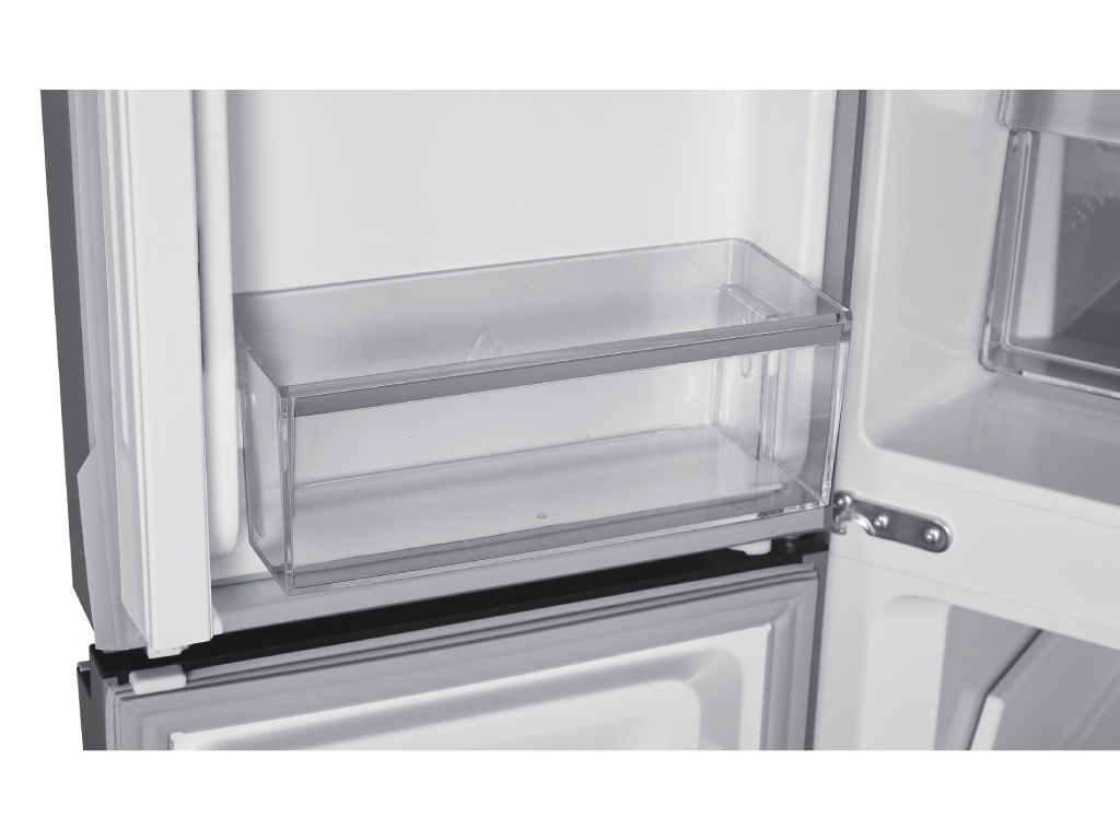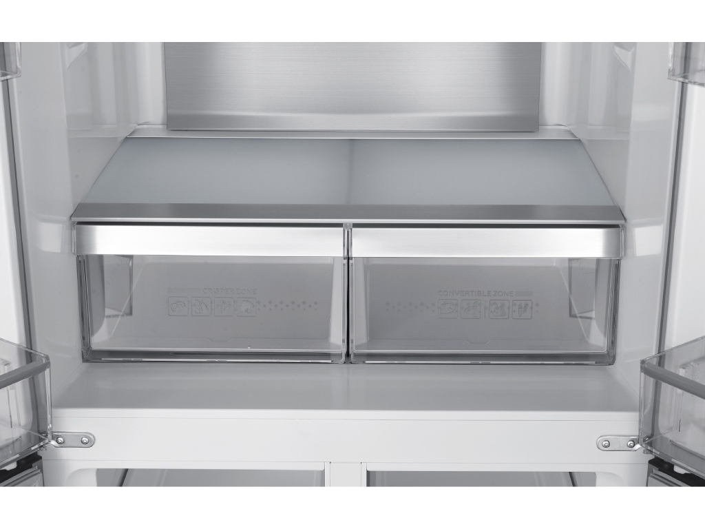 Smanjite potrošnju energije do 10% uz AI energetski režim u SmartThings Energy. Ako Vaša procijenjena potrošnja energije premašuje Vaš unaprijed postavljeni cilj, pruža Vam opciju da uštedite energiju. Inteligentno podešava brzinu kompresora i ciklus odmrzavanja, na osnovu Vašeg obrasca korištenja i okruženja. Pratite i upravljajte svojim frižiderom bilo kada i bilo gdje. Njegov ugradeni Wi-Fi Vam omogucava da pratite i prilagodite njegove performanse pomocu aplikacije SmartThings. Možete jednostavno kontrolisati režim hladenja, mijenjati temperaturu i primati upozorenja ako ste ostavili otvorena vrata. Takoder ce otkriti i pomoci da dijagnostikujete probleme. Cuvajte dosta hrane u prostranoj unutrašnjosti od 635 litara. SpaceMax™ tehnologija cini zidove mnogo tanjim. Tako se stvara upotrebljiviji prostor za skladištenje bez povecanja vanjskih dimenzija ili ugrožavanja energetske efikasnosti. Ravni rashladni kanal u stražnjem zidu takoder smanjuje „mrtvi prostor“. Održavajte stabilnu temperaturu unutar frižidera kako bi Vaša hrana ostala svježa cak i ako cesto otvarate i zatvarate vrata. Metalni kanal za hladenje u zadnjem zidu zadržava hladnocu iz vazduha i pomaže pri brzom obnavljanju gubitaka toplote. Takoder doprinosi vrhunskom izgledu i veoma se lako briše. Upravljajte svojom potrošnjom energije bilo kada. SmartThings Energy pruža korisne savjete kako biti energetski efikasan. TakoderVam omogucava da pratite potrošnju energije uredaja u stvarnom vremenu i poredite je sa prethodnim mjesecom. I možete dobiti upozorenja ako postoji vjerovatnoca da Vaši mjesecni ciljevi budu prekoraceni. Prestanite da se trudite da pronadete prostor za stvari koje svakodnevno koristite. Big Vegi kutija velikog kapaciteta pruža zgodan prostor za skladištenje velike kolicine svježeg povrca i voca. Olakšava pronalaženje svega što redovno jedete. Svi su na jednom mestu, ne zauzimaju prostor u kuhinji.