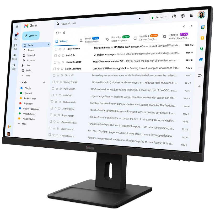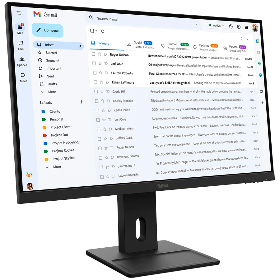 ThinkVision E27-40, 23.8" IPS, 1920x1080 FHD, 1500:1, 300 nits, 100Hz, 178 / 178, 16:9, 4/6ms, HDMI, DP, VGA, 2x 2w, Tilt, Swivel, Pivot, Height Adjust Stand, VESA, Raven Black, 3Yr