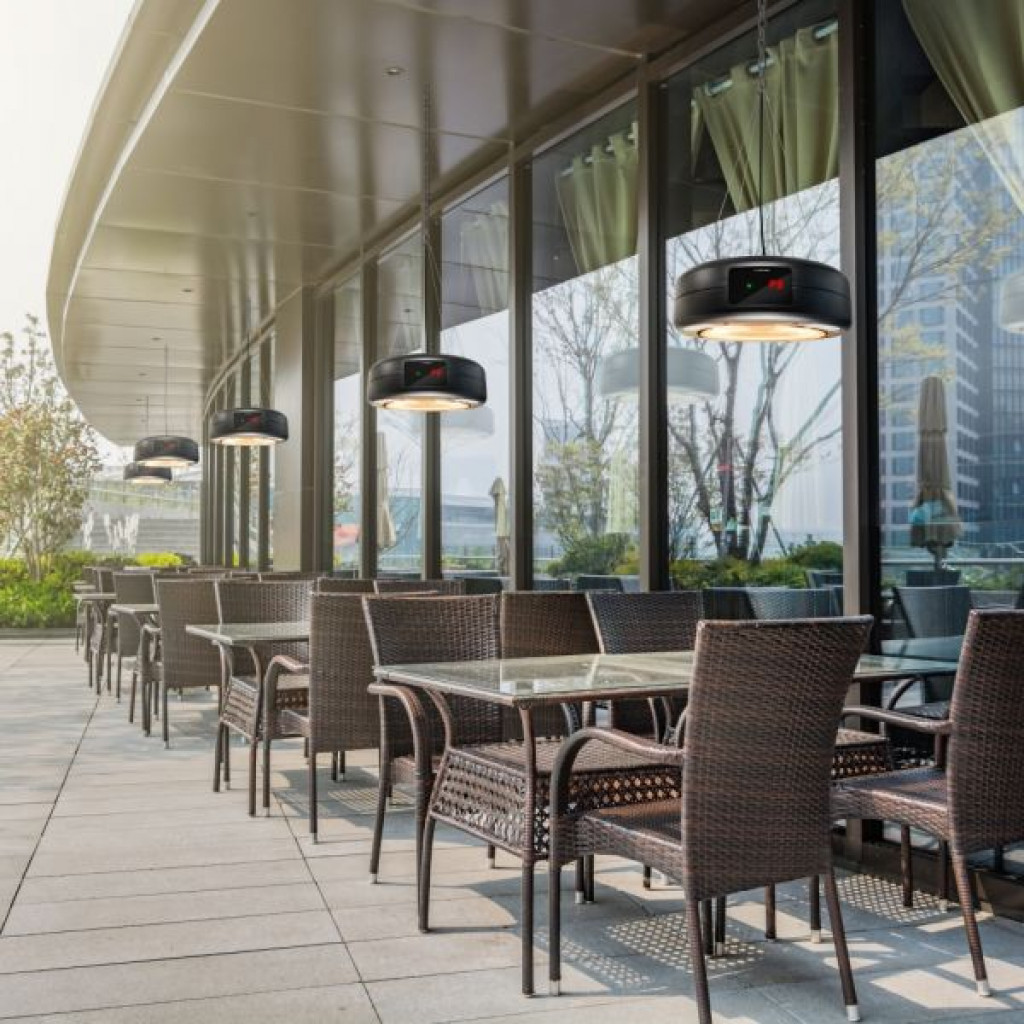 Naš stropni grijač otporan na prskanje (IP24) IR 1550 SC od aluminija iznimno otpornog na vremenske uvjete preporučuje se za dugotrajnu upotrebu u ugostiteljstvu na otvorenom. Moderan dizajn i ujedno robusna konstrukcija čine radijator idealnim izvorom topline za natkrivene prostore za sjedenje i stajanje u vanjskom cateringu restorana, kafića, barova, kamiona s hranom ili događanja. Sezona na otvorenom počinje ranije i dulje osigurava zamjetan porast prodaje.
