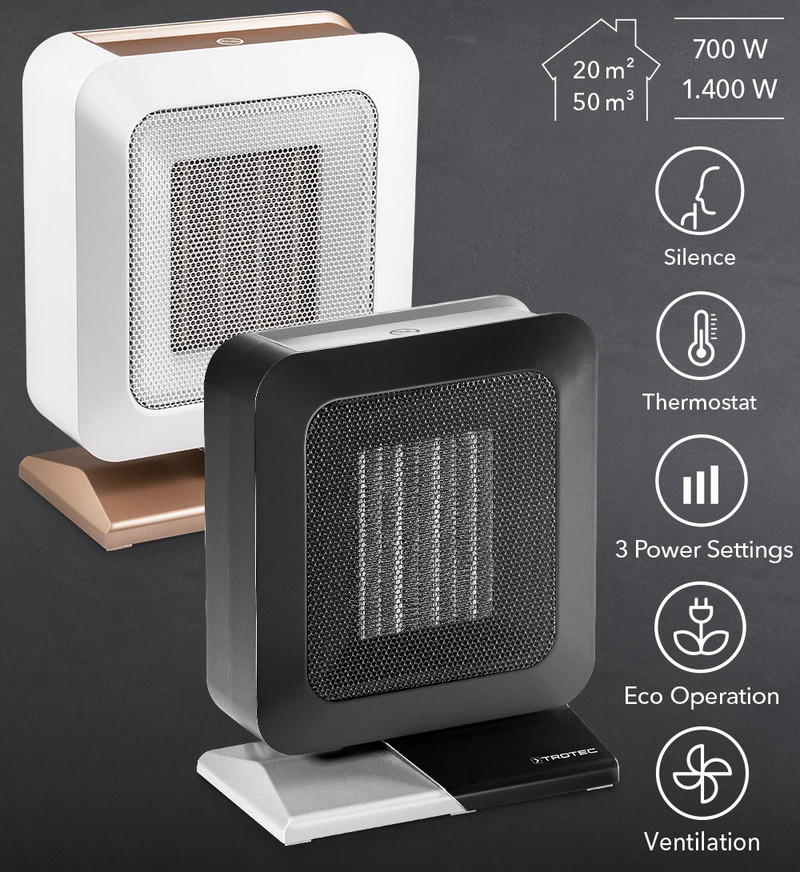 Keramički grijači PTC element osigurava ekološki osviješćeno i energetski učinkovito grijanje u prostorijama veličine do 20 m²/50 m³.