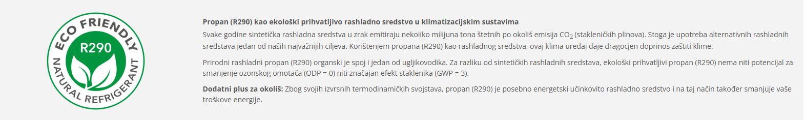 Maksimalni kapacitet hlađenja: 2.6 kW