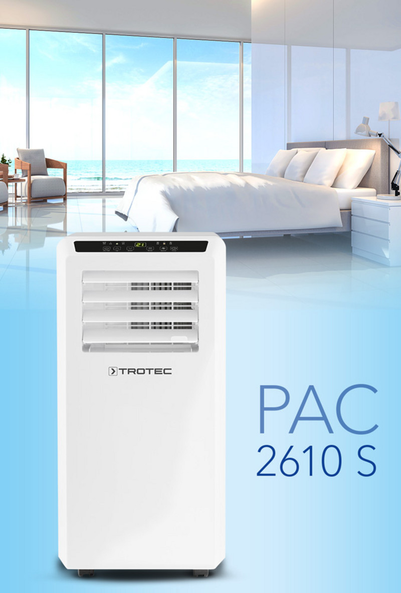 Bilo u spavaćoj sobi, dnevnom boravku ili radnoj sobi - ako želite postaviti mobilni klima uređaj PAC 2610 S u drugu sobu, svojim se nesmetanim transportnim kotačićima lako može premjestiti s jednog mjesta na drugo. Za razliku od trajno instaliranih klimatizacijskih sustava, uvijek možete koristiti mobilnu klimatizacijsku jedinicu točno tamo gdje je trenutno potrebno hlađenje - bez bušenja, zavrtanja ili zidnih čepova. Trebate samo pričvrstiti crijevo za ispušni zrak uključeno u isporuku u otvor za prozor ili vrata i možete započeti s hlađenjem sobe!