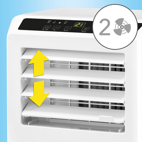 Učinkovito hlađenje pomoću zraka uz nisku potrošnjju energije. Ovaj air cooler koristi hladnu ili zamrznutu vodu kako bi ventilatorom ravnomjerno rashladio prostor. Spremnik za vodu od 4l.