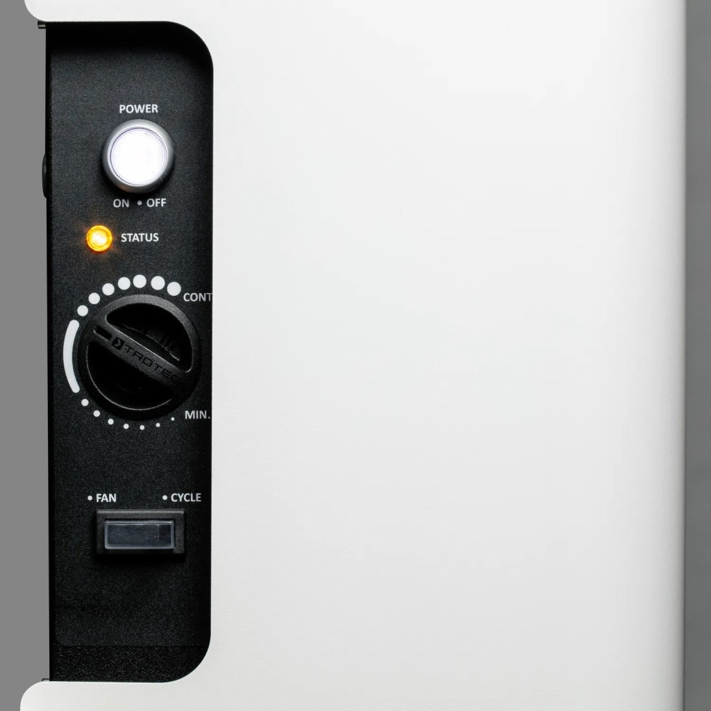 Odvlaživačem se upravlja putem pregledne upravljačke ploče koja kontrolira i željenu razinu vlažnosti i funkciju grijanja. Integrirani elektronički higrostat kontinuirano prati vlažnost u prostoriji i osigurava energetski učinkovitu regulaciju prema potrebi. Grijaća zavojnica se automatski aktivira kada to zahtijevaju uvjeti okoline.
