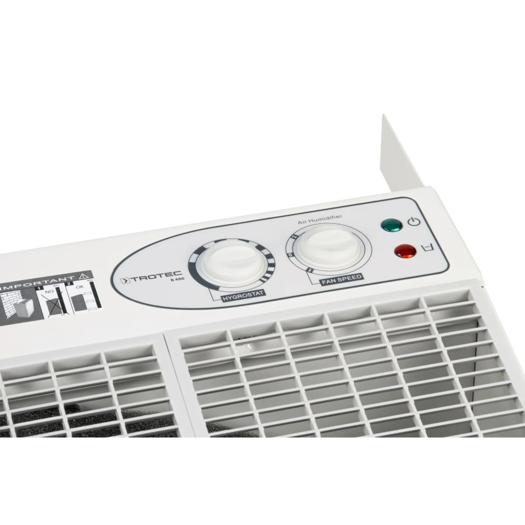 Trajnom rotacijom zrak se efektivno čisti i istovremeno nakuplja vlažnost prije nego se ravnomjerno i bez padalina, s izborom dva stupnja ventilacije, ponovo dodaje zraku prostorije. Tihi sinkronizirani motor B 400 omogućuje pouzdano ovlaživanje i velikih prostorija pri maloj potrošnji struje.