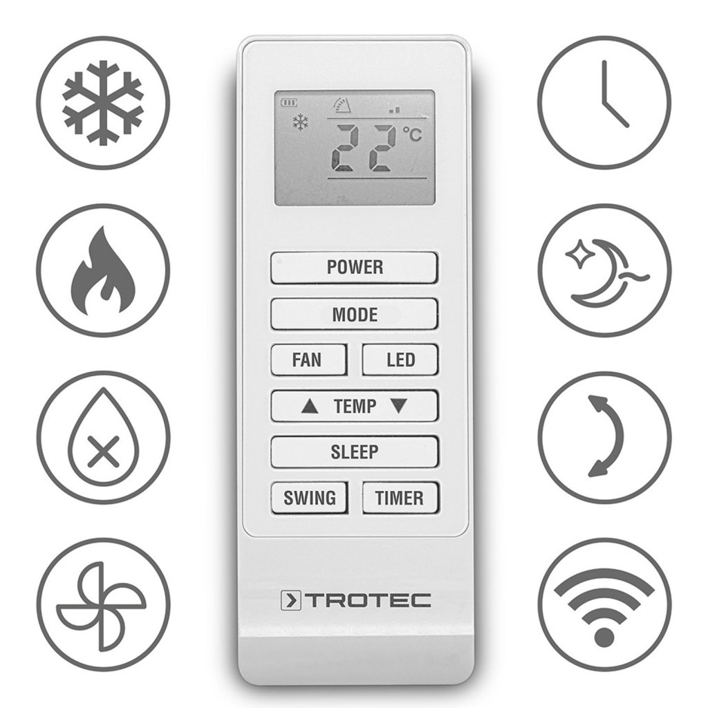 Sve postavke PAC-W 2650 SH mogu se napraviti putem praktičnog IR daljinskog upravljača ili Trotec Mobile App-a. Dolazite li ranije kući i čeznete li za hlađenjem? Nema problema - aktivirajte jedinicu klima uređaja na jednostavan način pomoću pametnog telefona ili tableta kada ste vani. Možete pozvati trenutnu sobnu temperaturu, postaviti željenu temperaturu, aktivirati hlađenje ili grijanje - i još mnogo toga. Pametna kontrola klima uređaja automatski regulira temperaturu, hladi sobnu temperaturu čak i prije nego što dođete kući i automatski se isključuje kada izađete iz kuće. Također možete podesiti temperaturu na daljinu.