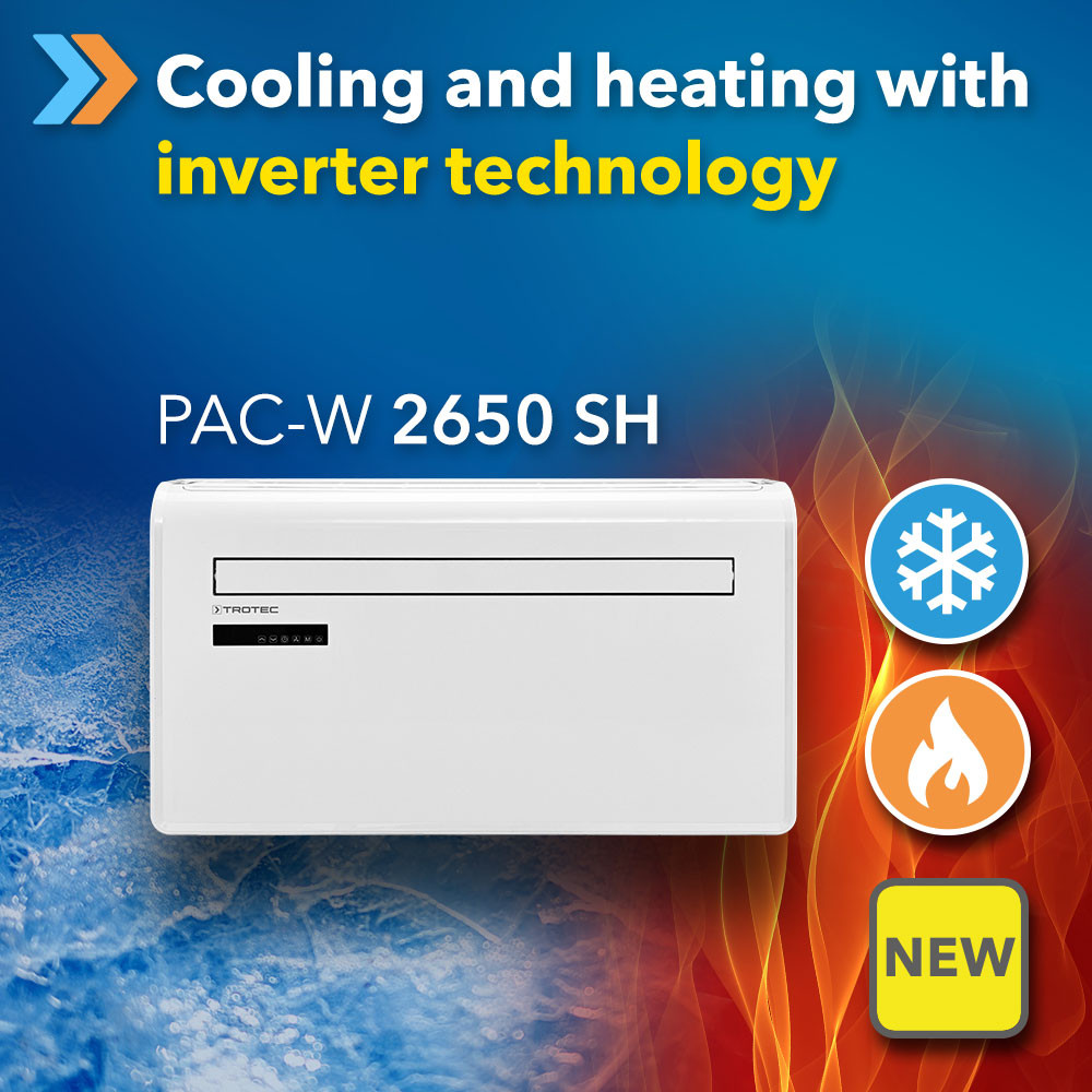Dobro je znati: klima uređaj PAC‑W 2650 SH s inverterskom tehnologijom posebno je tih i ekonomičan za korištenje. Kompresor (kompresor) pali lagano i uvijek se prilagođava trenutnim uvjetima. Kao rezultat toga, potrošnja energije PAC-W 2650 SH je do 30% niža od potrošnje sustava bez inverterske tehnologije za uštedu energije.