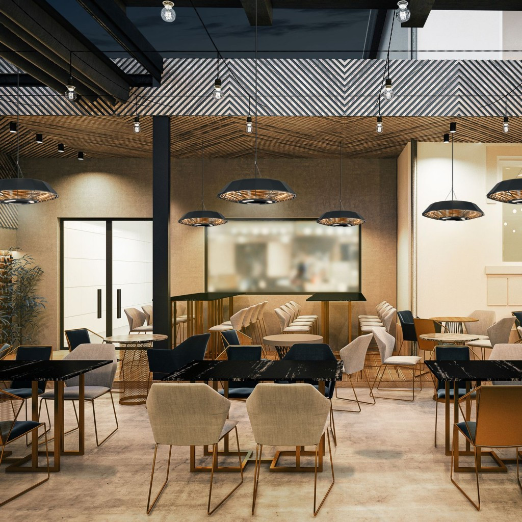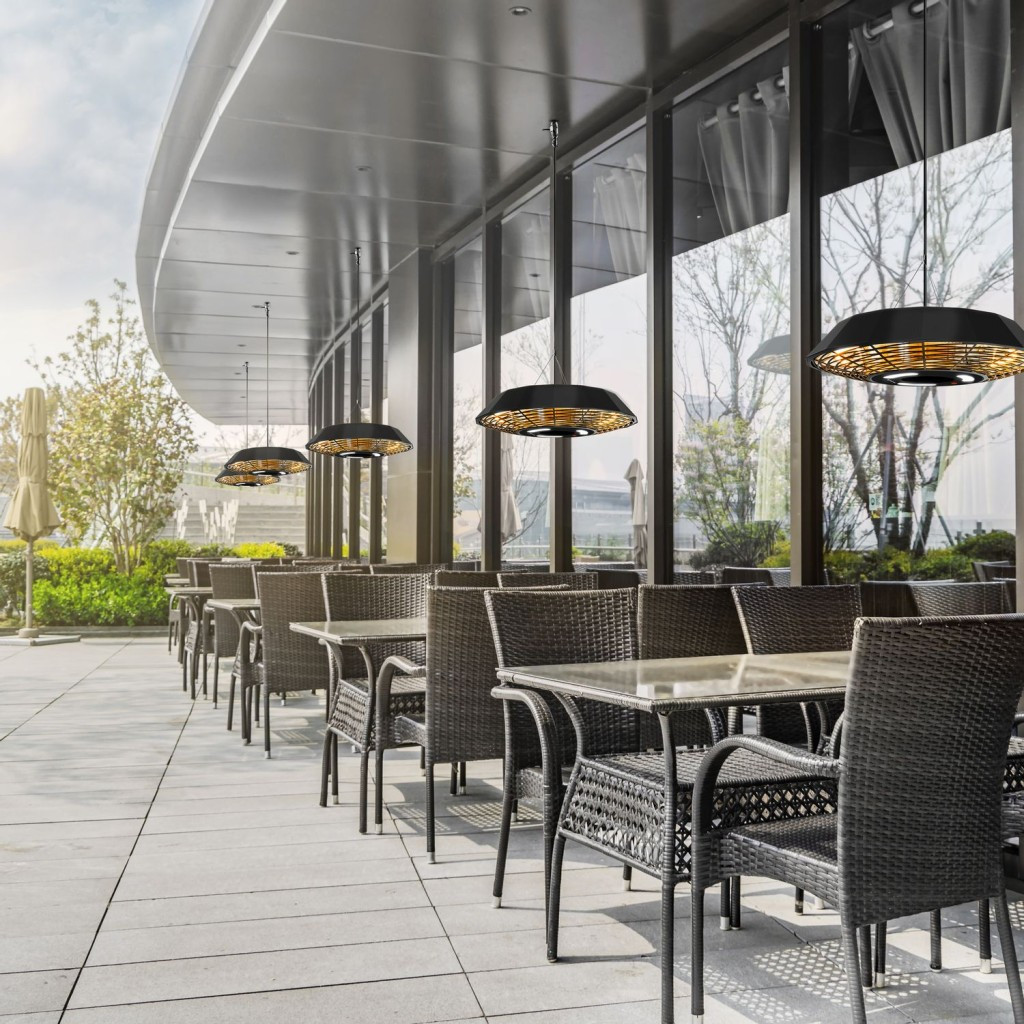 100-postotna stropna grijalica otporna na kišu IR 2010 SC izrađena od aluminija premazanog prahom, u skladu sa klasom zaštite IP45, objedinjuje sve što gastronomski profesionalci očekuju od rješenja za grijanje restorana na otvorenom. Njegov jednako privlačan i robustan dizajn, jednostavnost korištenja s daljinskim upravljanjem i visoka učinkovitost infracrvene tehnologije grijanja čine grijač zračenjem ekonomski atraktivnim izvorom grijanja za nenatkrivene vanjske prostore restorana, kafića, barova, kamiona s hranom ili događanja. Sezona na otvorenom počinje ranije i dulje osigurava zamjetan porast prodaje.