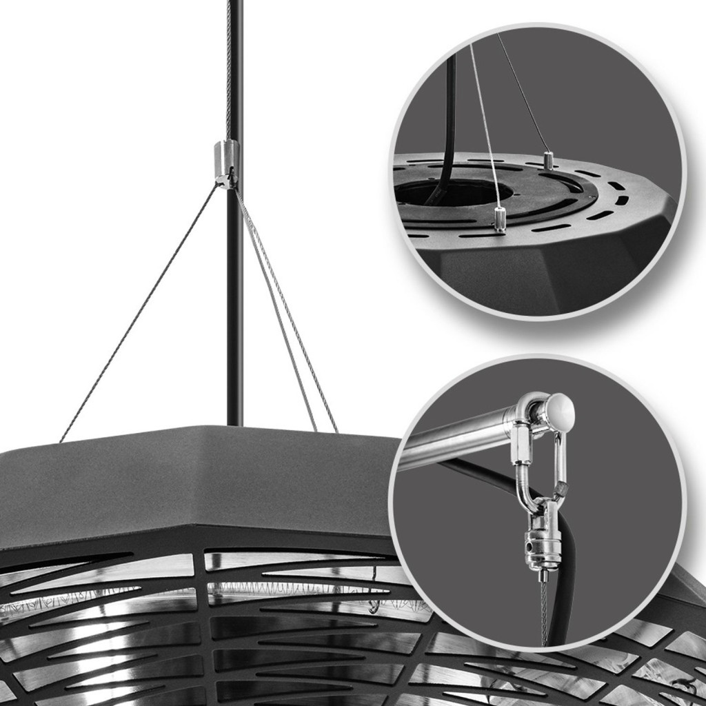 Isporučeni kabelski sustav, koji se bez alata pričvršćuje na čelične kabelske držače grijaćeg zaslona i stropnog ili zidnog nosača, omogućuje maksimalnu fleksibilnost pri ugradnji 3 kg svjetlosnog grijača. Za zidnu montažu potrebna je odstojna vješalica (dodatni zidni nosač) koja se može kupiti u specijaliziranim prodavačima. Za jednostavnu ugradnju grijalice sa 1,8 metara dugim strujnim kabelom i Schuko utikačem nisu potrebne dodatne bušotine ili skupi majstori.