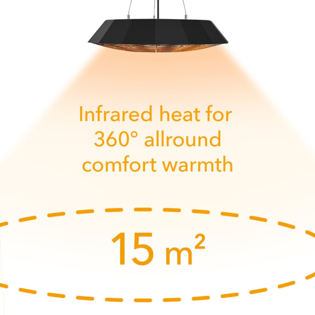 Sveobuhvatna toplina od 360° koja zrači prema dolje iz reflektorskog zaslona od 46 cm ciljano zagrijava područja do 12 m². Za razliku od konvencionalnih konvektora, IR 2010 SC ne zagrijava prvo okolni zrak, što je izrazito neučinkovito, posebno na otvorenom. Osobito ugodno percipirana infracrvena toplina se odmah apsorbira i pohranjuje u koži. Zahvaljujući ovom principu rada, IR 2010 SC grije osjetno intenzivnije i energetski učinkovitije od ostalih tehnologija grijanja - i bez neugodnih mirisa ili zvukova.