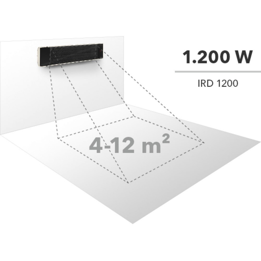 IRD 1200 omogućava ravnomjernu i preciznu distribuciju topline. Zato je ovaj uređaj idealan za prostorije zaštićene od vjetra kao što su terase, balkoni, terase restorana i zatvoreni unutarnji prostori.