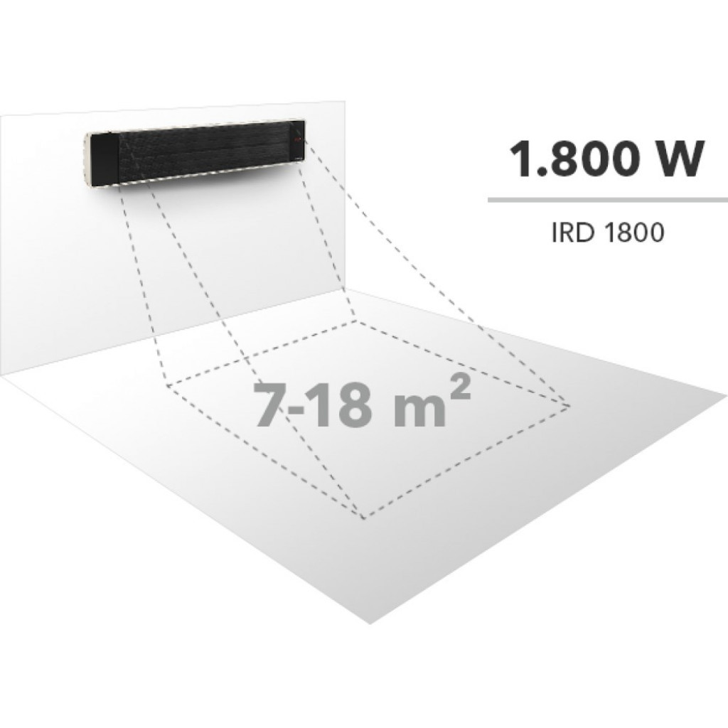 IRD 1800 omogućava ravnomjernu i preciznu distribuciju topline. Zato je ovaj uređaj idealan za prostorije zaštićene od vjetra kao što su terase, balkoni, terase restorana i zatvoreni unutarnji prostori.