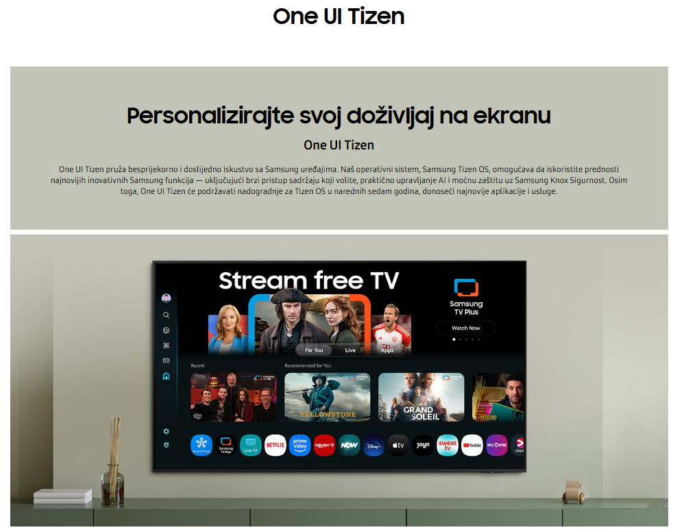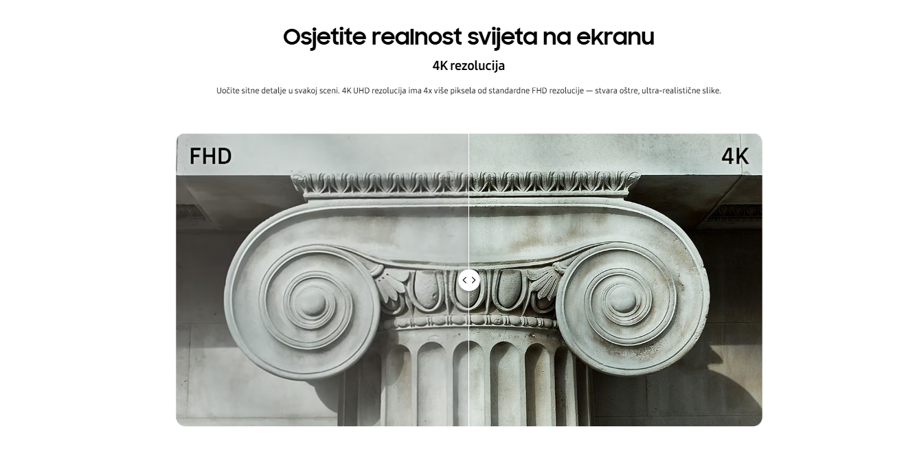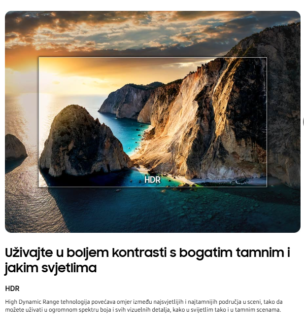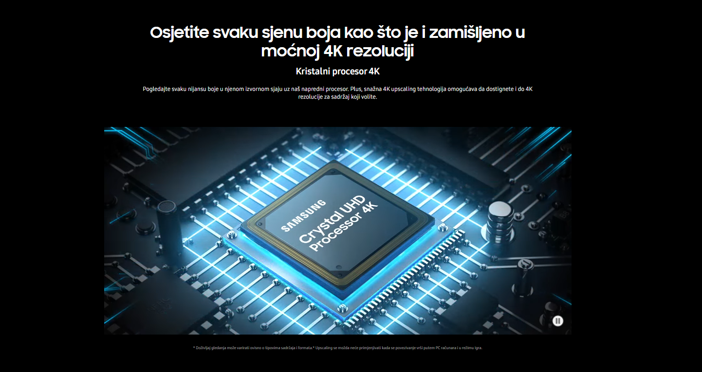 50" UHD pametni TV sa moćnim procesorom, HDR podrškom i Tizen OS-om za jednostavan pristup sadržaju. Idealan za svakodnevno gledanje filmova, serija i sportskih događaja. Pogledajte svaku nijansu boje u njenom izvornom sjaju uz napredni procesor. Plus, snažna 4K upscaling tehnologija omogućava da dostignete i do 4K rezolucije za sadržaj koji volite.
